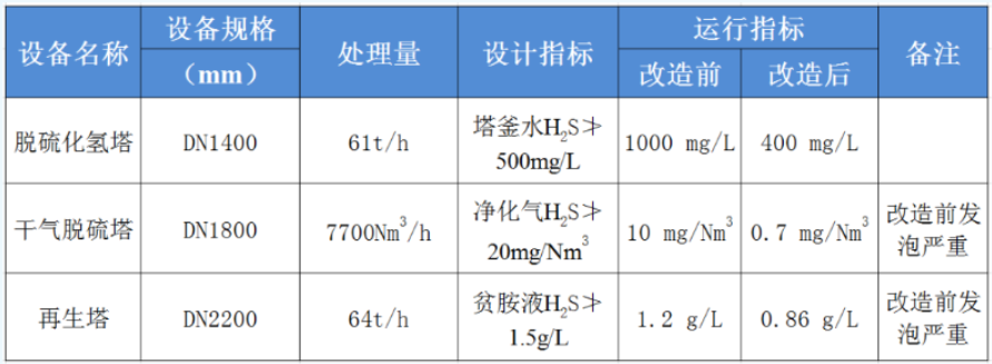 胺液是一種在濕法脫硫過(guò)程中經(jīng)常用到的溶液。由于其具有極易發(fā)泡的性質(zhì),干氣脫硫塔和再生塔在運(yùn)行過(guò)程中都存在溶劑發(fā)泡淹塔的情況。且干氣脫硫塔較為明顯,出現(xiàn)全塔壓差增大,凈化干氣帶液嚴(yán)重的現(xiàn)象。在裝置整體未達(dá)到設(shè)計(jì)負(fù)荷的情況下,再生塔存在塔頂酸性氣產(chǎn)量較設(shè)計(jì)量大帶液嚴(yán)重的情況。
