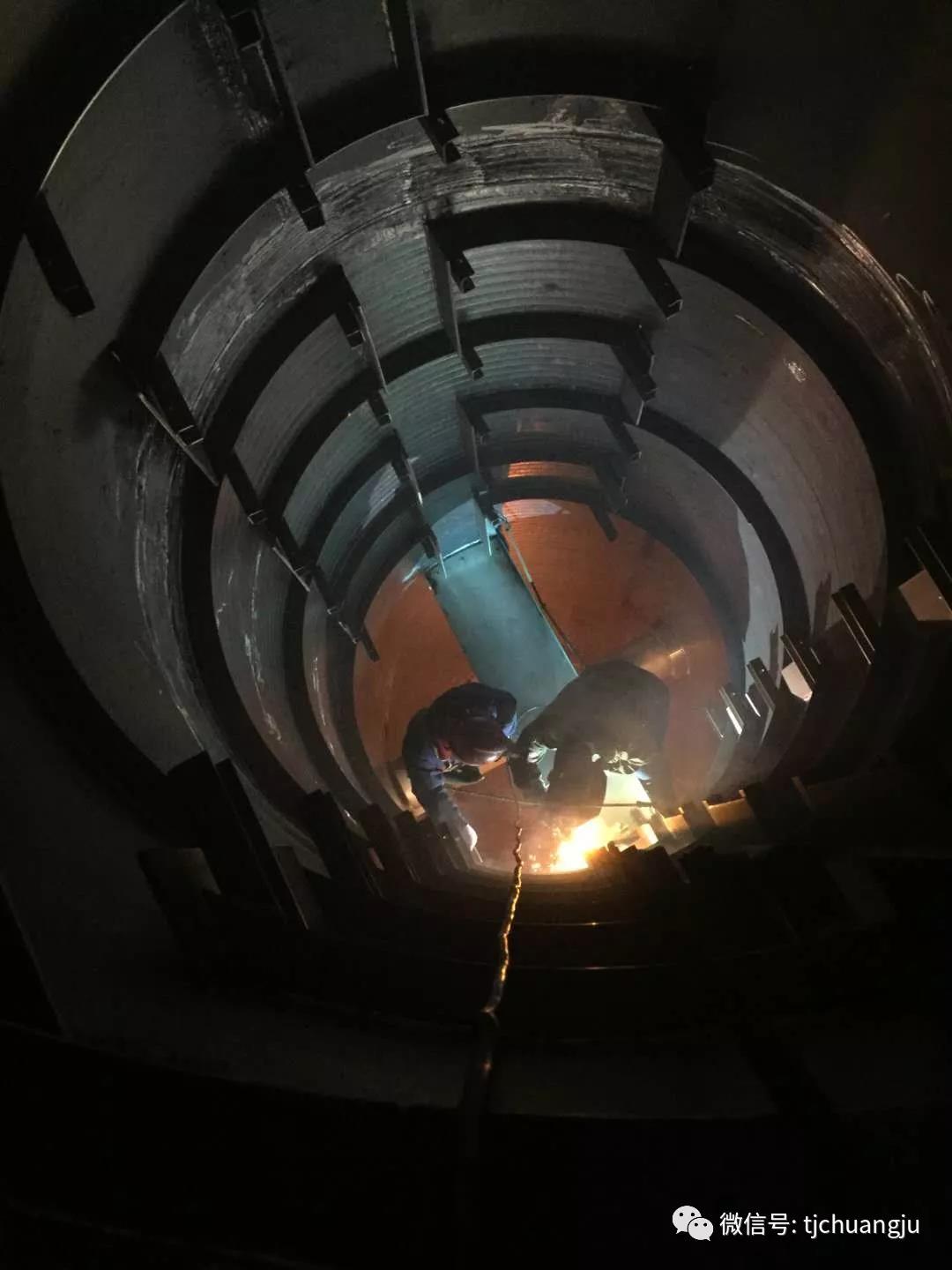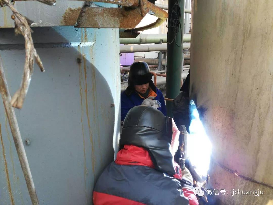 下圖為承德某公司蒸氨內(nèi)件改造工程現(xiàn)場,工程從2018年12月28日開始,直至2019年1月10日結(jié)束。寒風(fēng)中行人匆匆,露天工作的工程部同事們的辛苦可想而知。