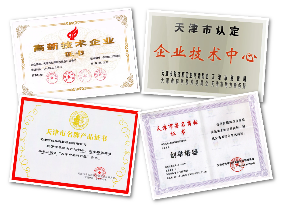 天津市創(chuàng)舉科技股份有限公司自成立以來(lái),始終堅(jiān)持“務(wù)實(shí)求發(fā)展、攜手創(chuàng)繁榮”的經(jīng)營(yíng)理念,不斷追求企業(yè)管理及技術(shù)創(chuàng)新,先后被認(rèn)定為國(guó)家級(jí)高新技術(shù)企業(yè),天津市守合同重信用企業(yè),天津市科技小巨人企業(yè)、“中國(guó)塔器設(shè)備制造業(yè)10強(qiáng)企業(yè)”、“中國(guó)化工傳質(zhì)設(shè)備十強(qiáng)企業(yè)”等殊榮, “創(chuàng)舉塔器”也已被評(píng)為天津市著名商標(biāo)。