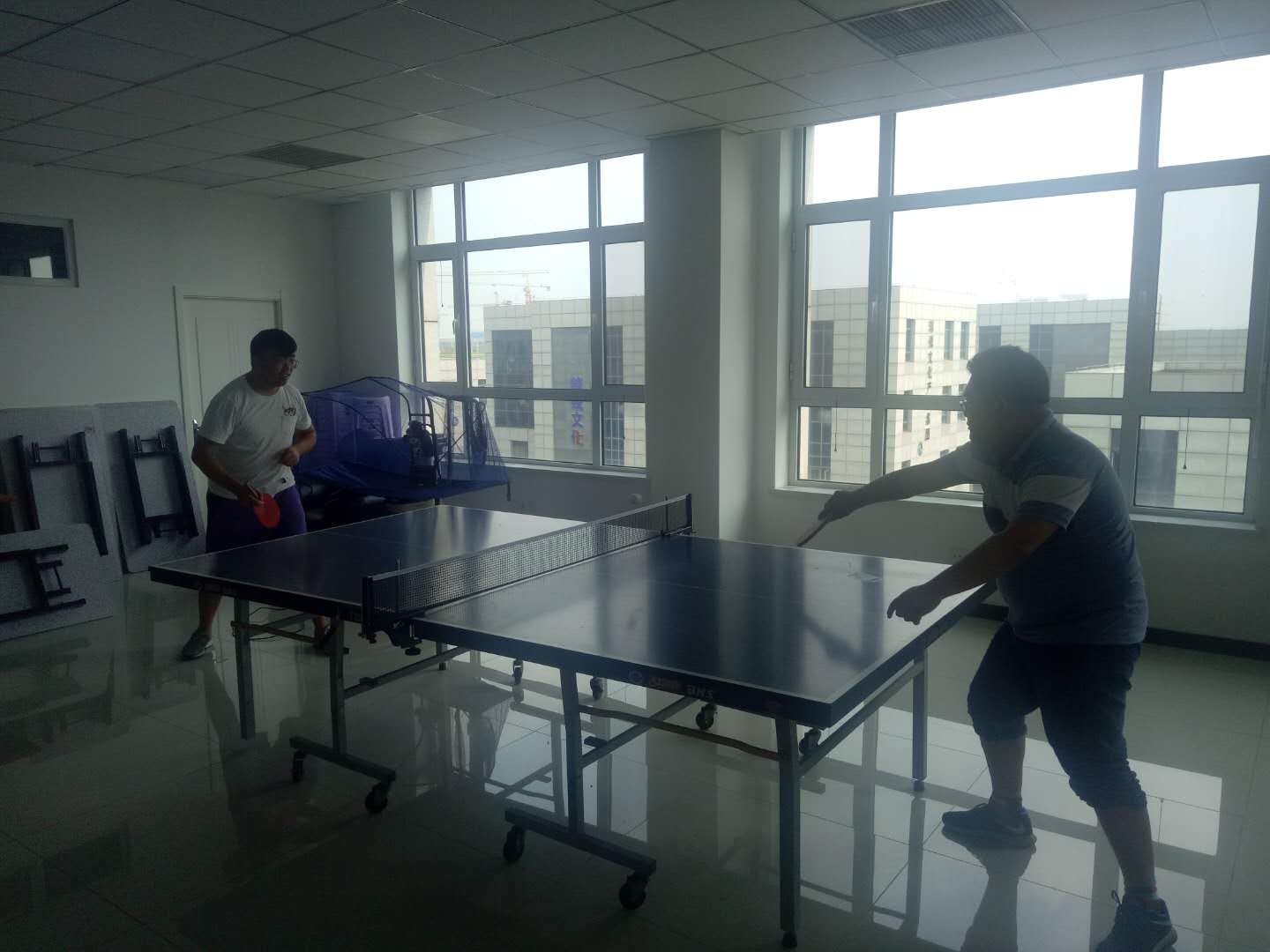 有的員工正在進(jìn)行單打,你來(lái)我擋,直拍、橫拍、扣球、旋轉(zhuǎn)球、弧線球,熱鬧非凡。大家不僅提升了球技,更鍛煉了身體。